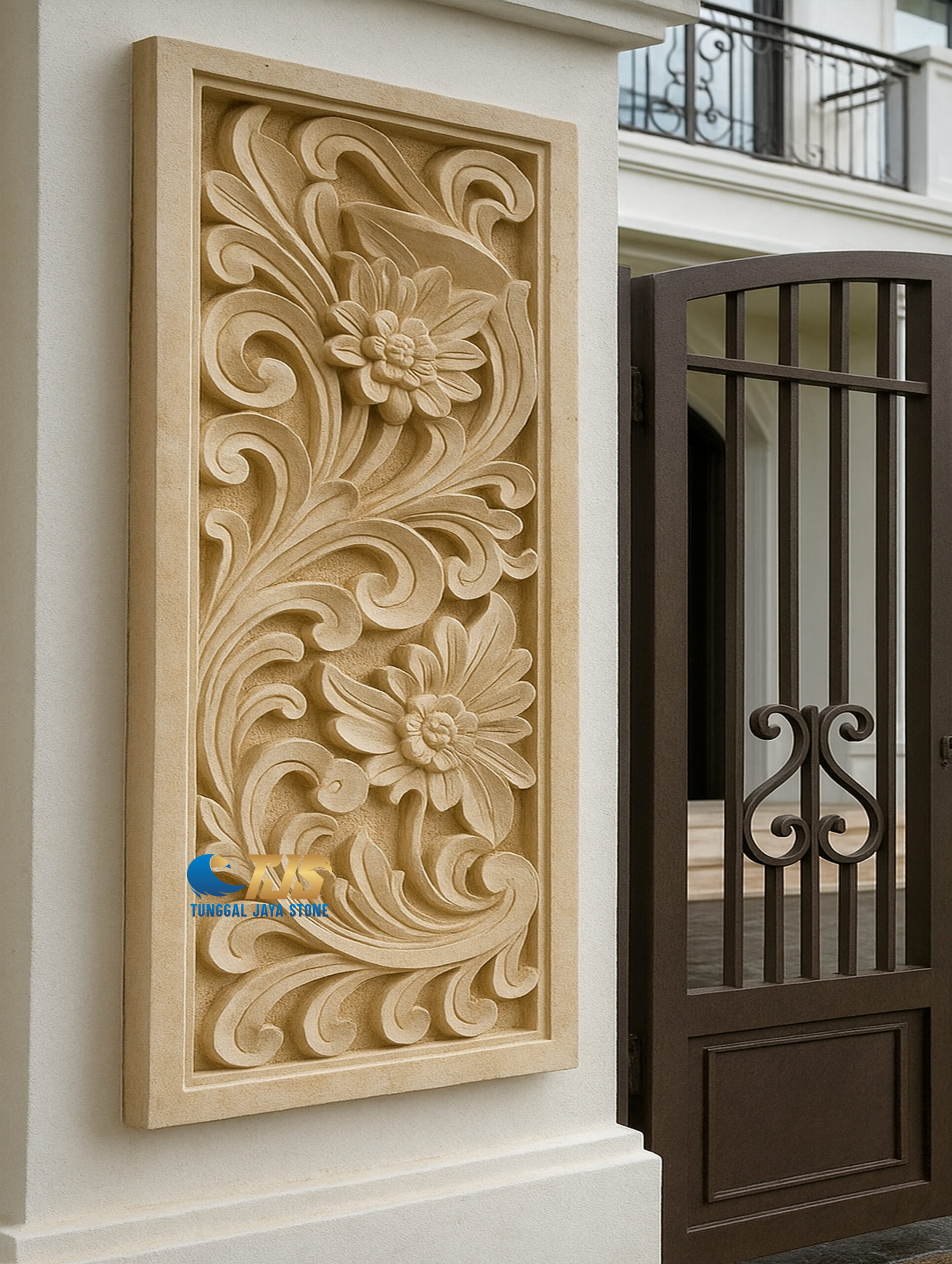 - Desain Artistik:Batu alam yang diukir dengan teliti menggambarkan keindahan alam,memberikan nuansa segar dan alami di setiap ruangan