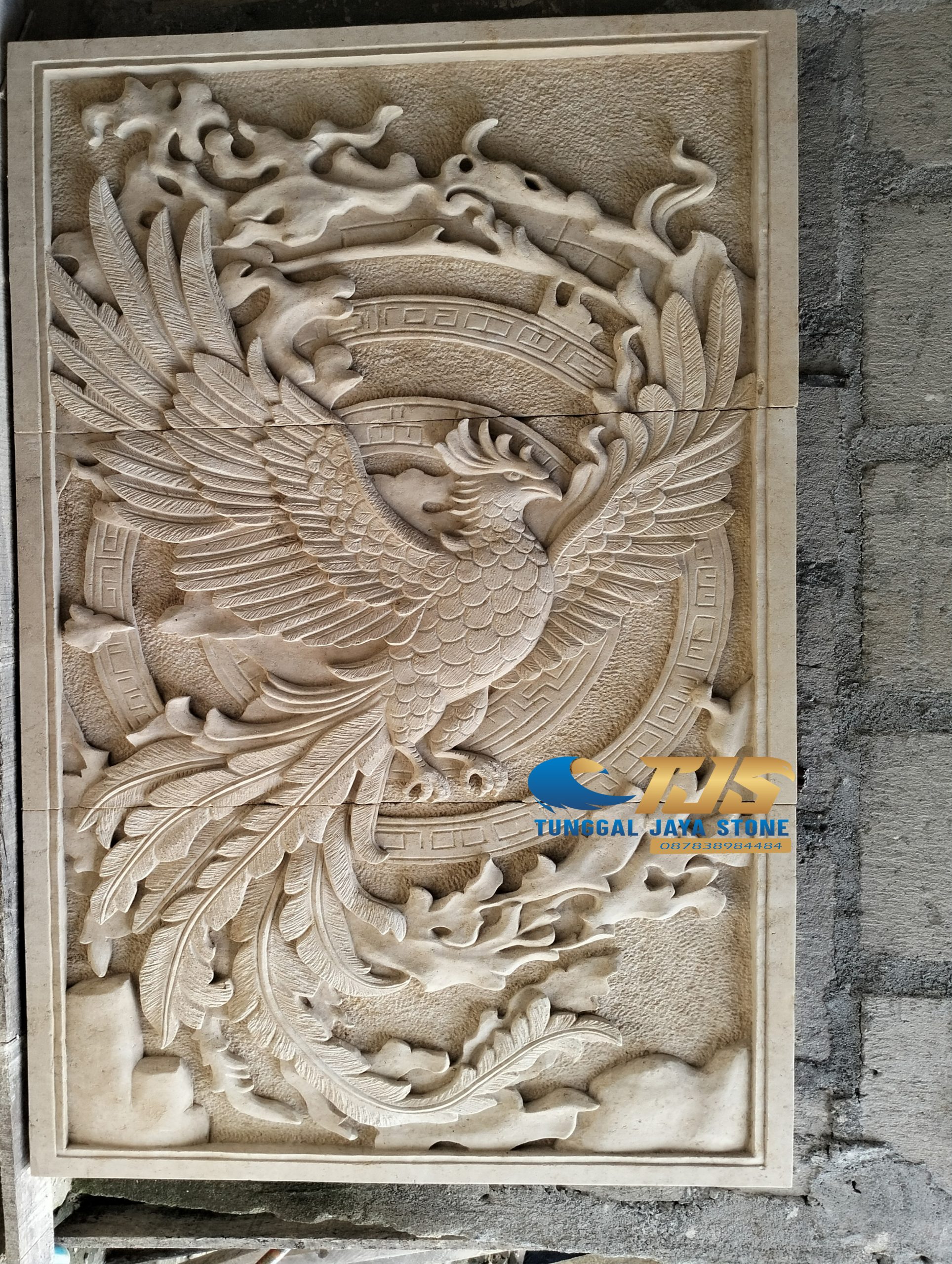 Ukiran relief burung finik Karya TunggalJayaStone,Ukiran batu alam salah satu karya unggulan yang menarik perhatian adalah ukiran batu alam motif burung Finik (Phoenix) karya TunggalJayaStone,pengrajin batu profesional yang dikenal akan kualitas dan keunikan setiap karya yang di buatnya,ukiran burung Finik dari TunggalJayaStone adalah pilihan tepat,jika ingin belanja produk kami bisa costum motif dan ukuran,segera pesan dan hubungi kontak kami 087838984484